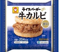 炭火焼き風の牛カルビとねぎに甘だれをからめ、こんがり焼いたライスパテでサンドしました。ライスパテは国産米を使用。