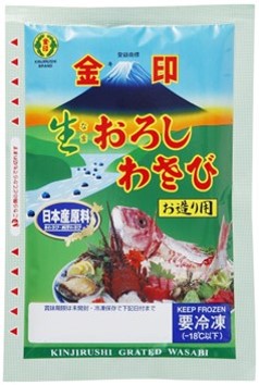 ・主原料に本わさびのみを使用し、本わさびが持つおろしたての香り、辛味をそのままに凍結パックした高級生すりわさびです。