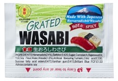 Wasabi, Hydrolyzed Vegetable Protein(Water, Salt, Corn), Horseradish, Soy Sauce(Water, Salt, Soybeans, Wheat,Rice), Fermented Seasoning, Modified Food Starch, Water, Sugar, Canola Oil, Monosodium Glutamate, Natural Flavorand Artificial Flavor, Kelp Extract, Xanthan Gum, Spirulina, Turmeric, Sucrose Fatty Acid Esters, Disodium 5'-Ribonucleotides